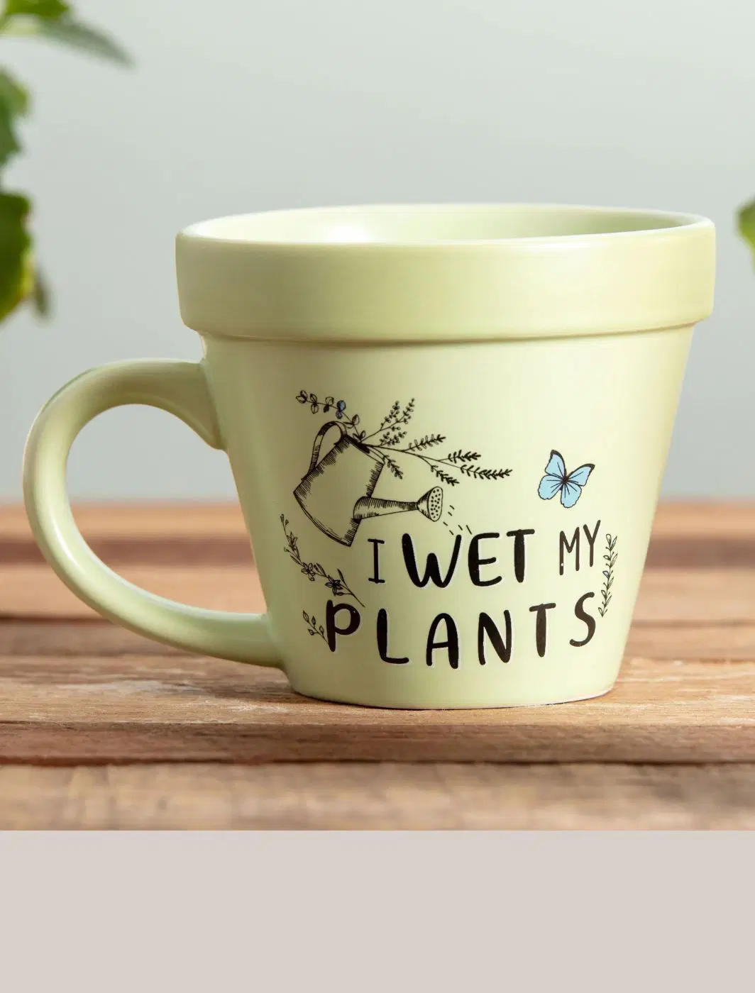 Know someone whose love for plants has totally taken over? Celebrate their green-thumb obsession with this hilarious and cheeky ‘Wet My Plants’ Plant-a-holic Mug! Featuring playful text that reads ‘I Wet My Plants’ along with charming plant illustrations, this pastel green mug is cleverly shaped like a plant pot—making it a must-have for any plant lover.